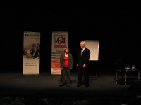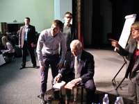 Но Брайан Трейси был не единственной звездой этого дня! Вначале на сцену поднялся Радислав Гандапас, самый титулованный бизнес-тренер России, со «вступительным мини-мастер-классом» на тему лидерства.